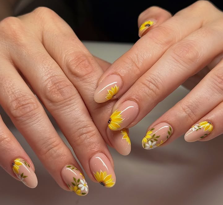 - Gorgeous summer nails with sunflowers