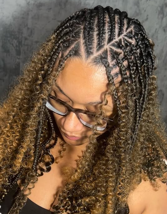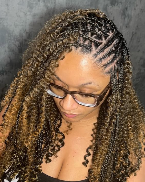 The flip over Fulani braids hairstyle isn’t complicated. It is a mix of knotless braids and cornrows.
