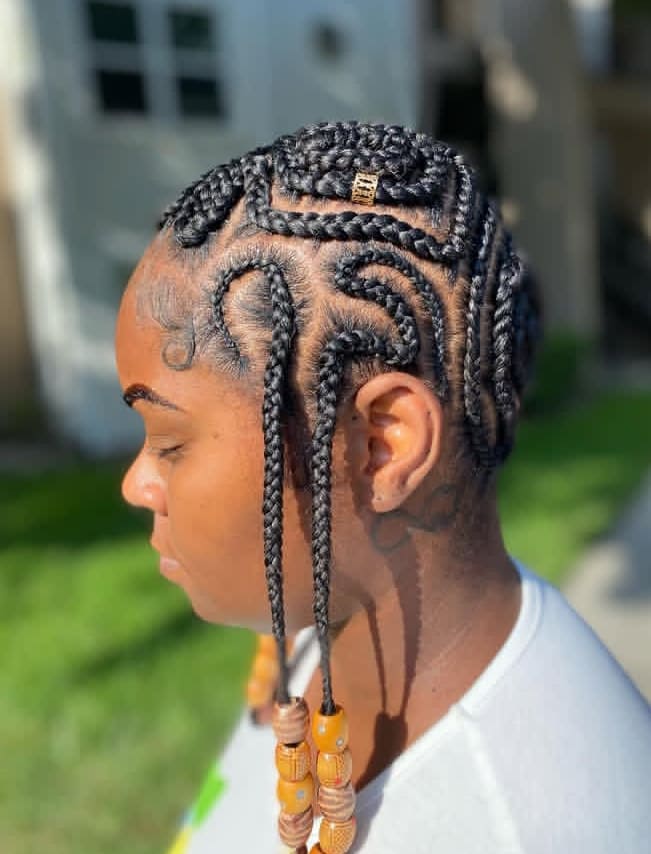 The braided baldie hairstyle is easy to maintain, protective, can be won under wigs, and gives both you and your hair stylist the opportunity to explore your creativity with intricate designs. Though it is good for any season, the bald head braids hairstyle is especially good for summer.