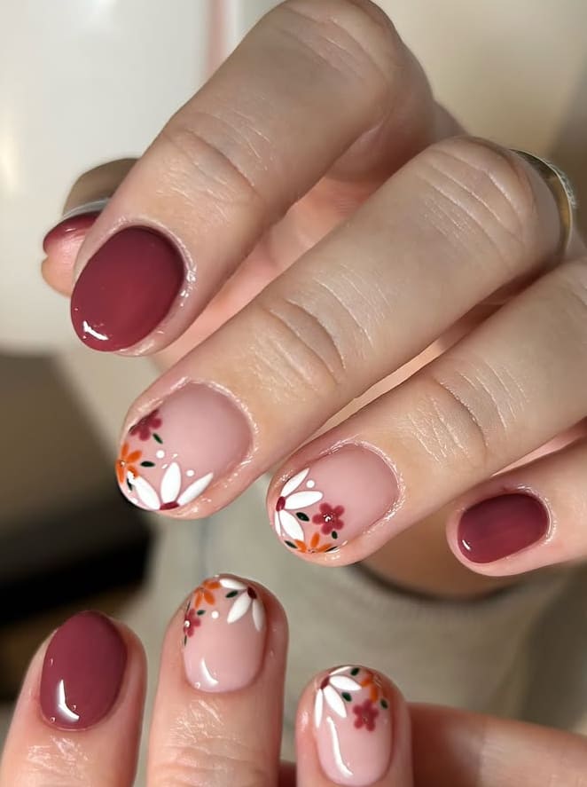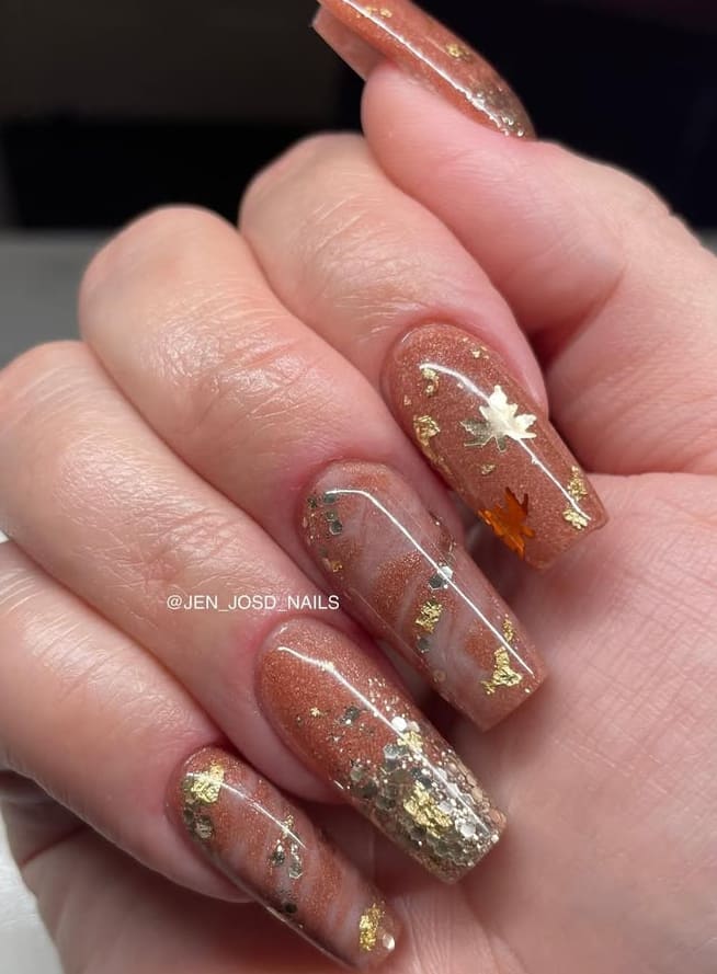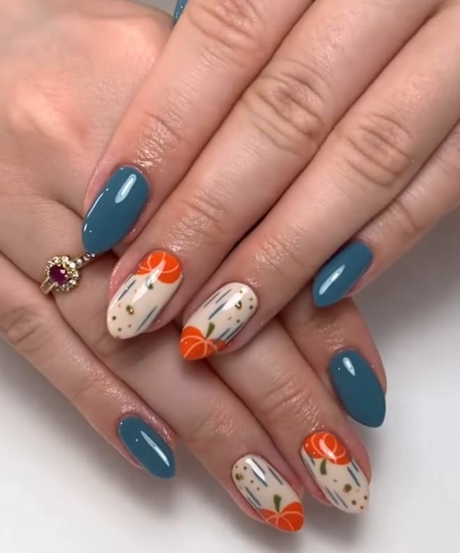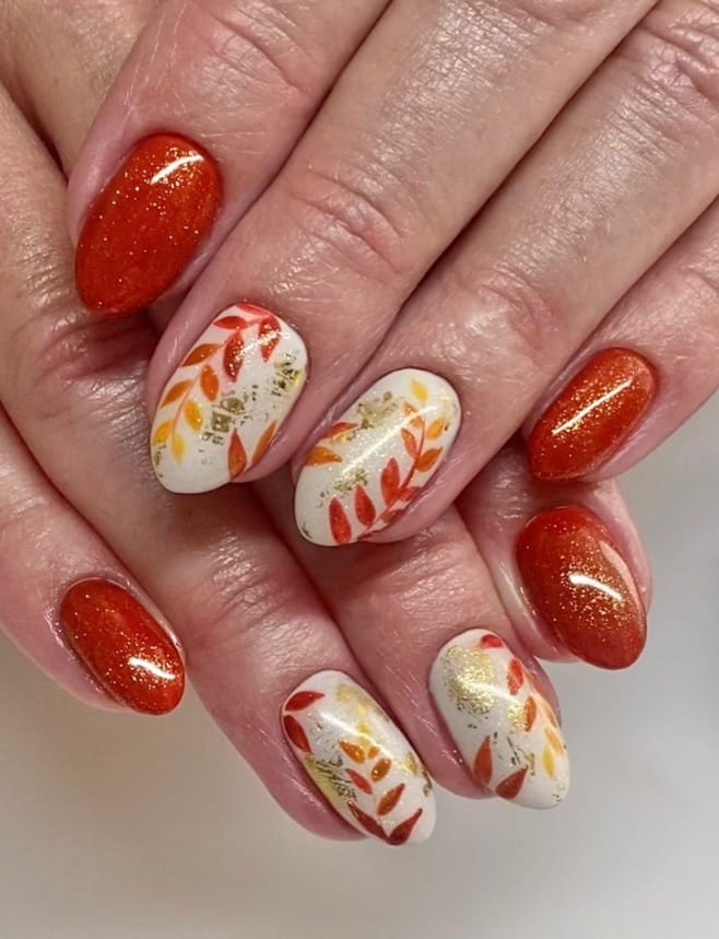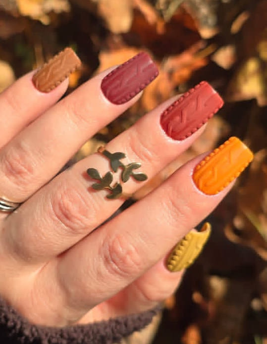 If you don’t want solid color nails, you can try some fall nail art to add to the aesthetics of your autumn mani.